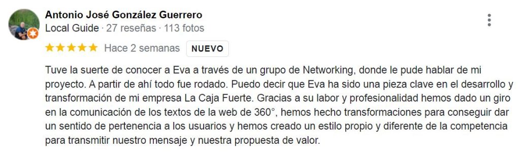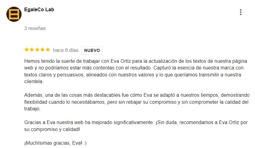 Después, haremos revisiones de los textos antes de que los publiques. E incluso hago una revisión final, una vez maquetados o publicados. Nos aseguraremos de que no hay errores y de que el mensaje y el diseño trabajan juntos. A los tres meses valoramos la experiencia del usuario en tu web con la herramienta de analítica que tengas instalada. Si es necesario, trabajamos en una nueva propuesta para mejorar el posicionamiento, la conversión y la fidelización.